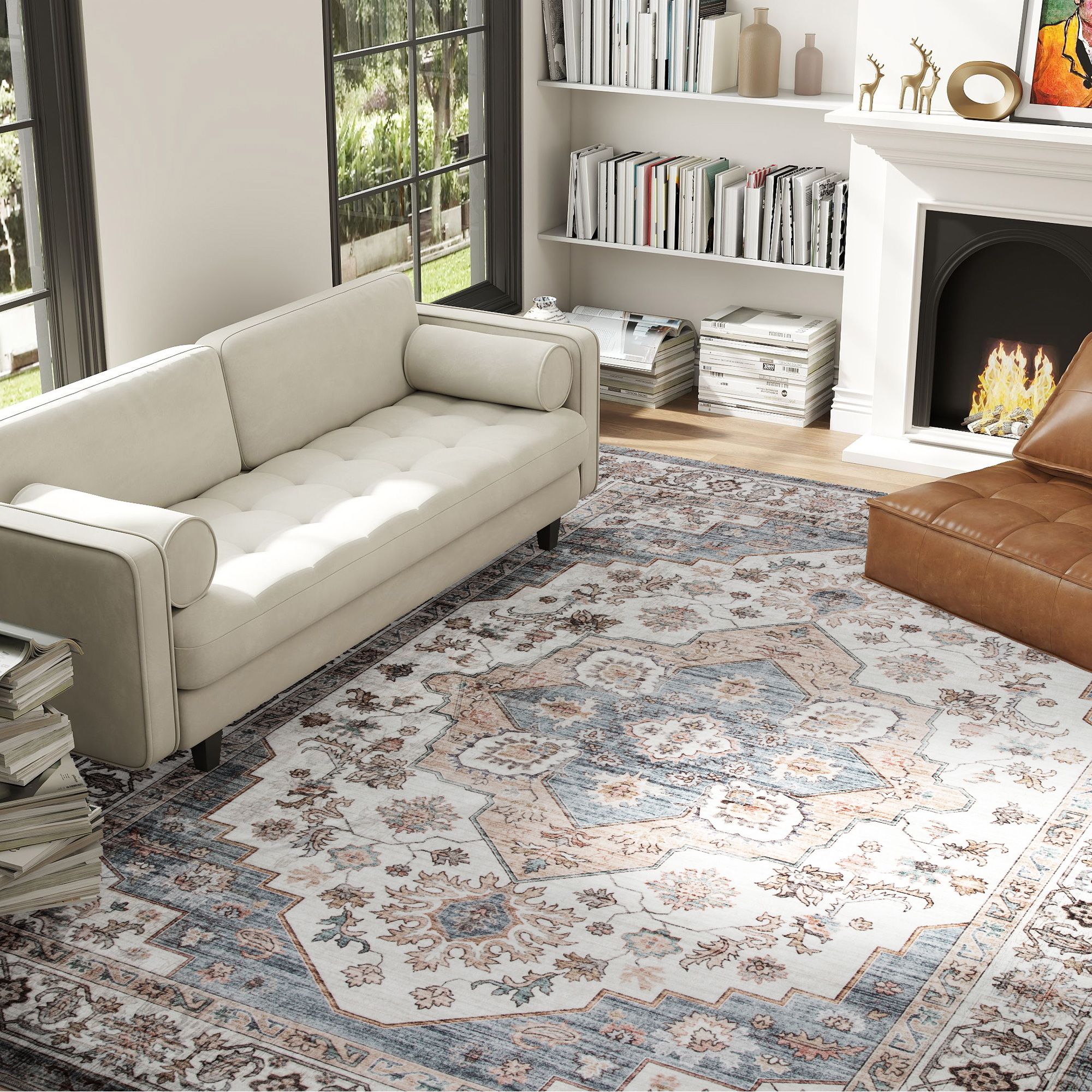 3.- Secure and Safe Placement: The non-slip backing keeps this vintage rug in place, reducing the risk of slips, making it great for busy areas or homes. Whether in the living room, bedroom, dining area, or hallway, it provides both safety and style
